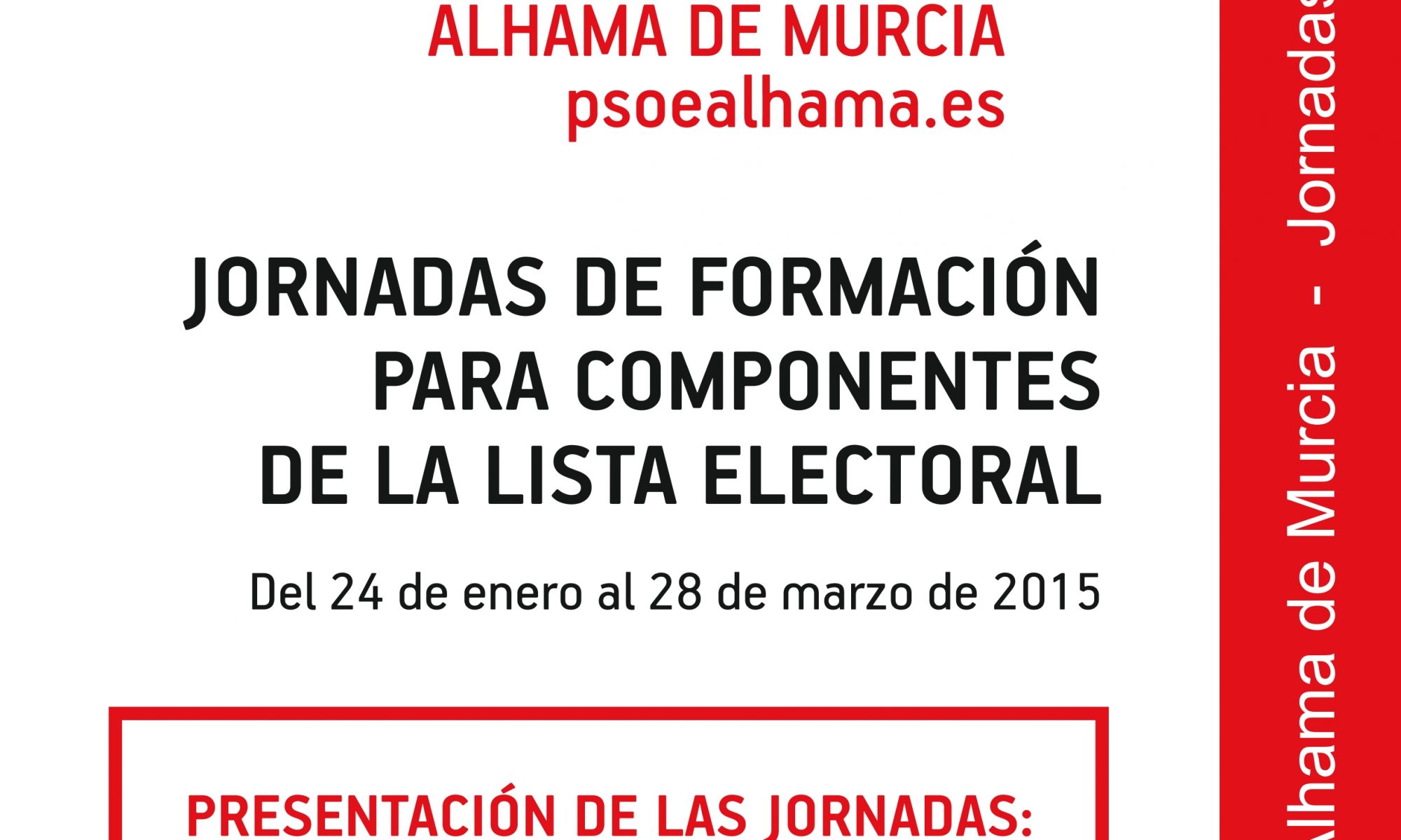 El sábado 10 de enero tiene lugar la presentación de la propuesta formativa por el candidato a la alcaldía y Secretario General, Diego Conesa, donde quedará perfilada definitivamente con todas las sugerencias y aportaciones de los componentes del grupo. Será en la Casa del Pueblo de Alhama, y contará con la asistencia, además del candidato a la alcaldía y asistentes al curso, de todos los secretarios generales y presidentes locales del partido de la democracia.