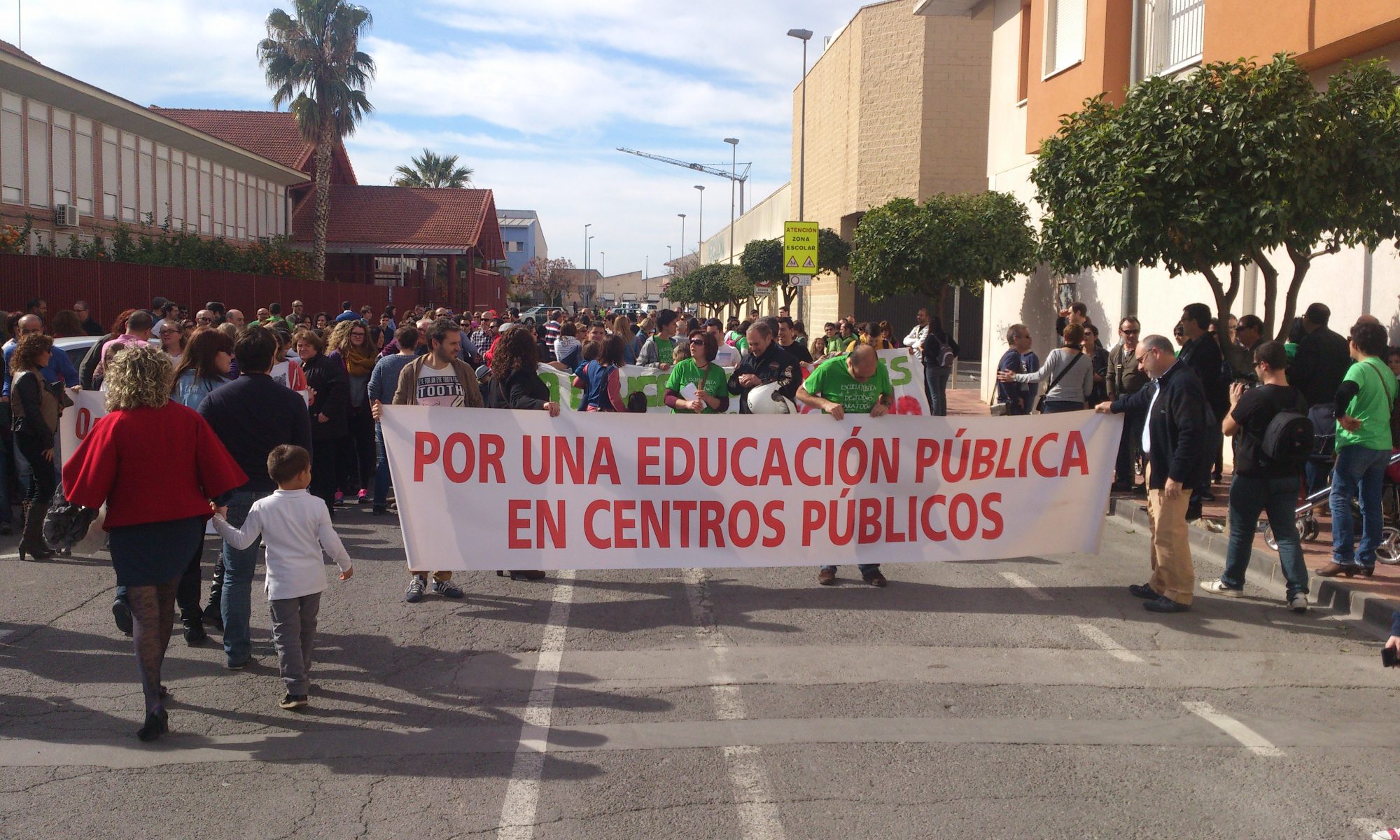 El pasado domingo 1 de marzo, la comunidad educativa se movilizaba para exigir igualdad de oportunidades y derechos en Alhama. El eslogan: «Por una educación pública en centros públicos» recorría las principales calles de nuestra localidad desde el Instituto Miguel Hernández hasta la puerta del Ayuntamiento en la Plaza de la Constitución.