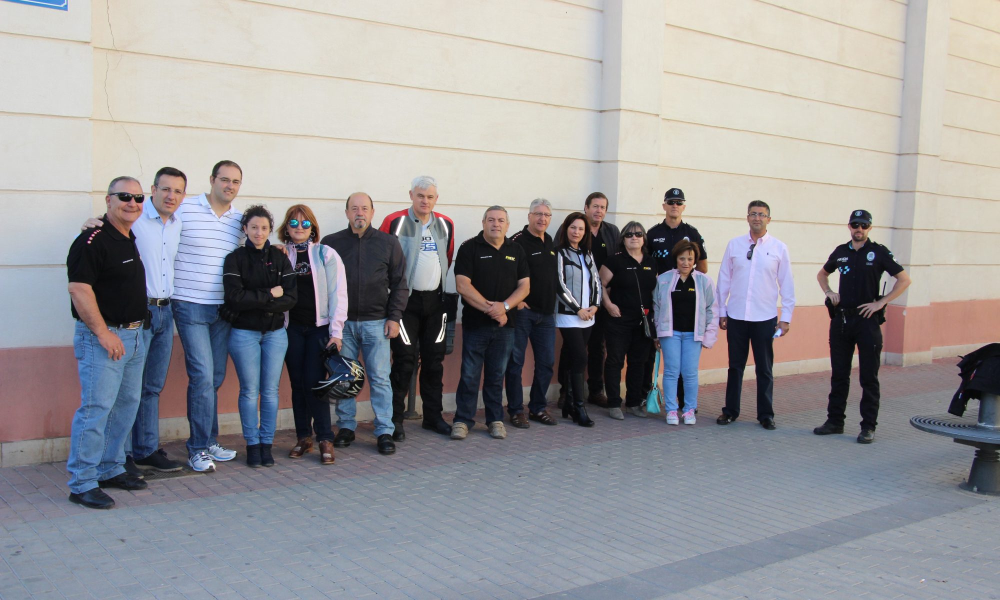Miembros de la Plataforma Motera en la Región de Murcia, encabezada por su coordinador, José Romero Albacete, han pasado esta mañana por nuestro municipio en su ruta hacia Alicante para celebrar el Día de la Moto.