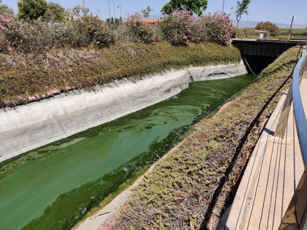 Los vecinos de la urbanización de La Isla, en Condado de Alhama, han venido denunciando el estado de abandono en el que se encuentra el lago artificial que rodea a las viviendas. Una consecuencia de la falta de previsión y dejadez del equipo de Gobierno de María Cánovas, que no ha sido capaz de procurar su abastecimiento con nuevos aportes de agua, por lo que esta infraestructura apenas cuenta hoy con un palmo de agua estancada que desprende un olor insoportable a cieno y materia orgánica en descomposición, lo que está generando constantes molestias a los propietarios y, además, puede suponer un grave problema de salubridad para las personas que residen allí.